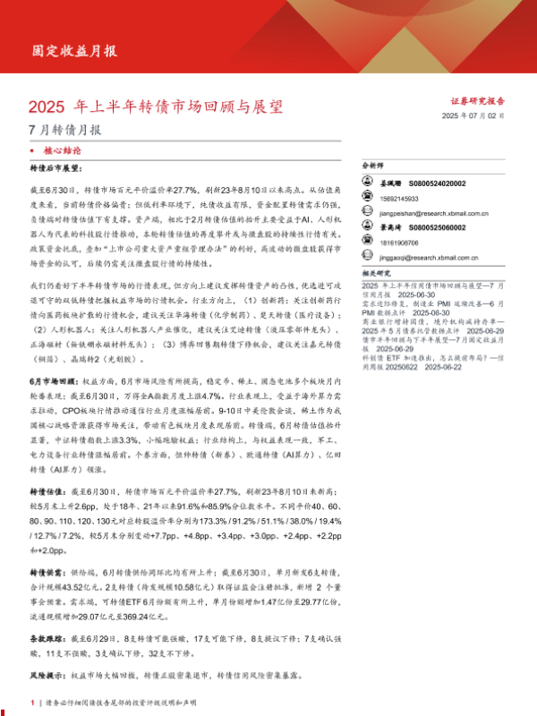 【西部证券】【20250702】7月转债月报:2025年上半年转债市场回顾与展望-18页 证券期货研究报告