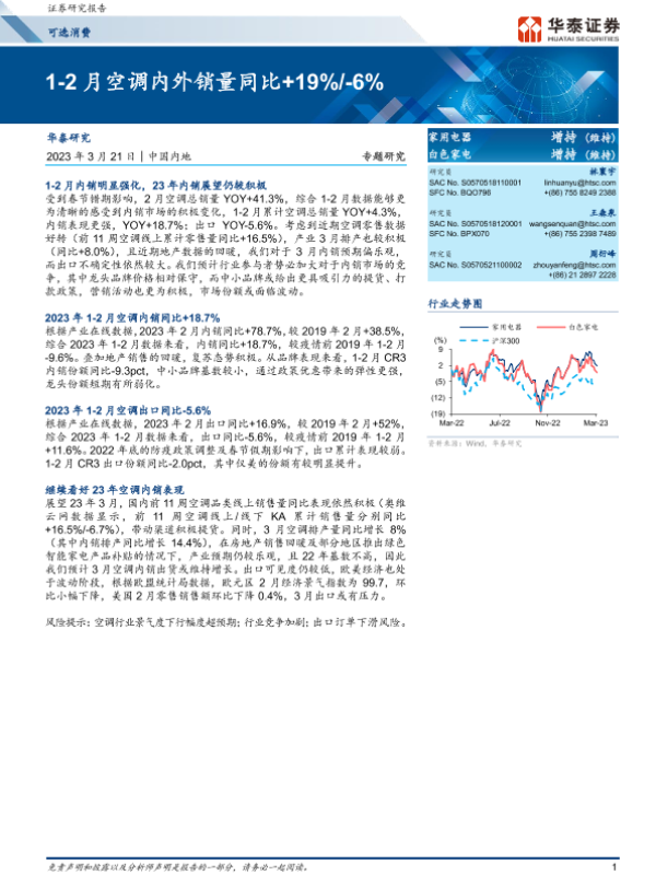 【华泰证券】【20230321】20230321-华泰证券-可选消费专题研究:1-2月空调内外销量同比+19% -6%-10页 行业研究