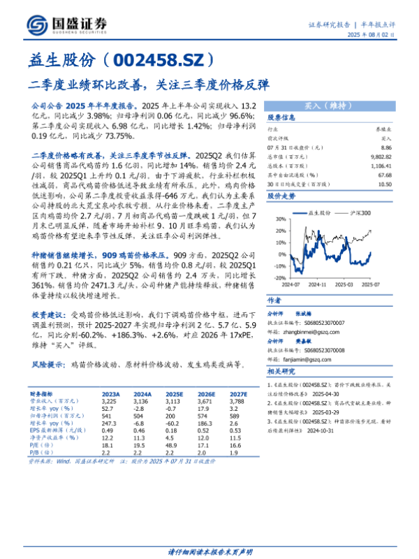 【国盛证券】【20250802】二季度业绩环比改善_关注三季度价格反弹-3页 证券期货研究报告