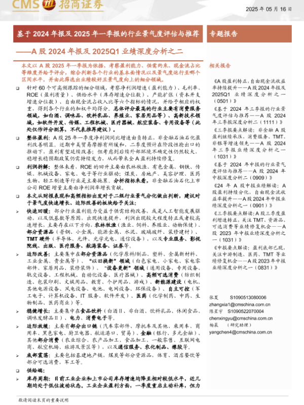 【海通证券】【20250516】2024年报及2025Q1业绩深度分析之二:基于2024年报及2025年一季报的行业景气度评估与推荐-34页 行业研究