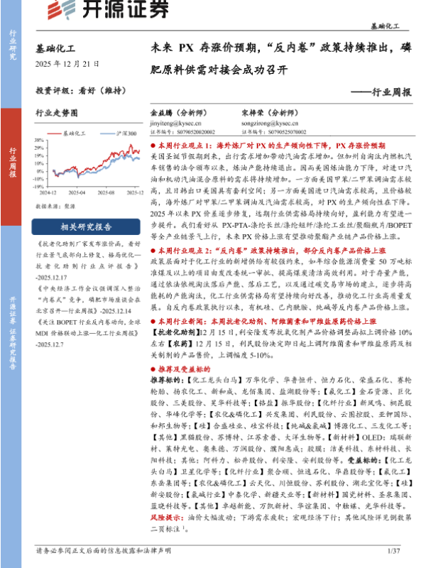 【开源证券】【202512】未来PX存涨价预期,“反内卷”政策持续推出,磷肥原料供需对接会成功召开-37页 证券期货研究报告