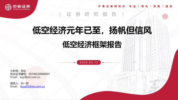 【中泰证券】【20240312】低空经济行业框架报告:低空经济元年已至,扬帆但信风-52页 行业研究