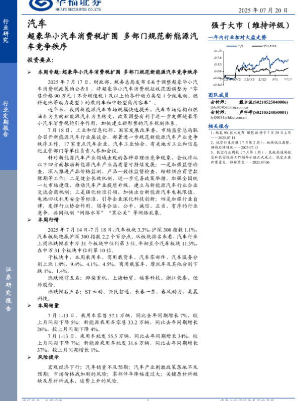 【华福证券】【20250720】汽车行业定期_process报告:超豪华小汽车消费税扩围,多部门规范新能源汽车竞争秩序-12页 行业研究