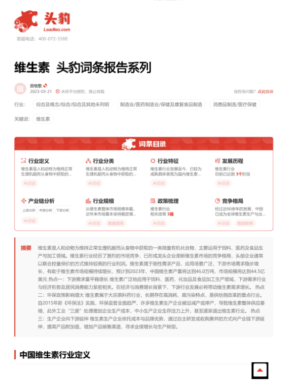 【头豹研究院】【2023】维生素 头豹词条报告系列-19页 行业研究