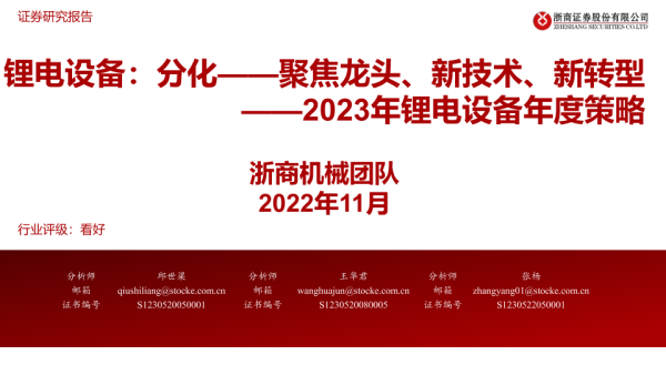 【浙商证券】【202211】2023年锂电设备年度策略:锂电设备:分化——聚焦龙头、新技术、新转型-61页 行业研究