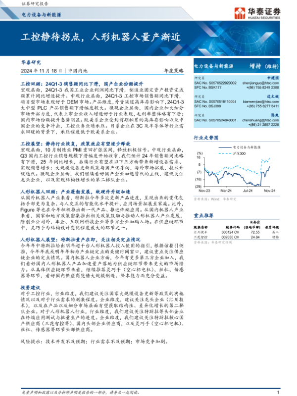【华泰证券】【20241118】电力设备与新能源年度策略:工控静待拐点,人形机器人量产渐近-20页 行业研究