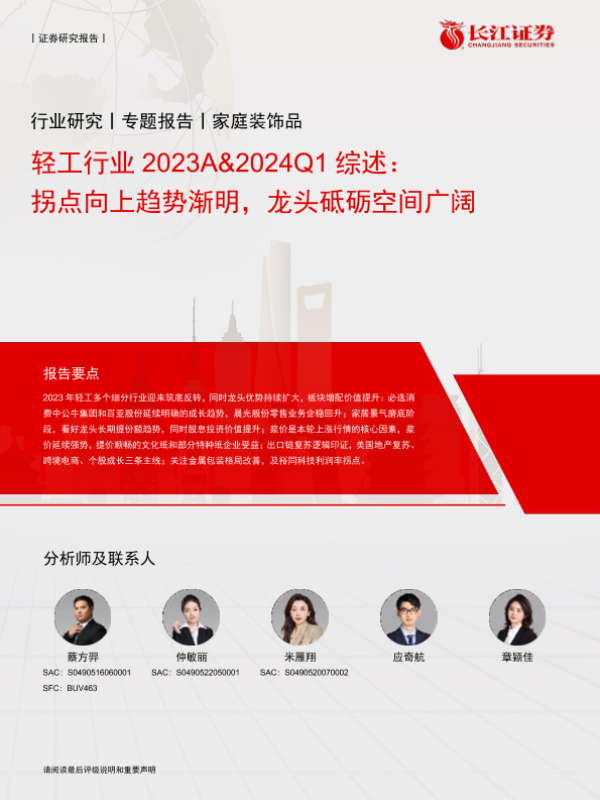 【长江证券】【20240516】轻工行业2023A&2024Q1综述:拐点向上趋势渐明,龙头砥砺空间广阔-44页 行业研究