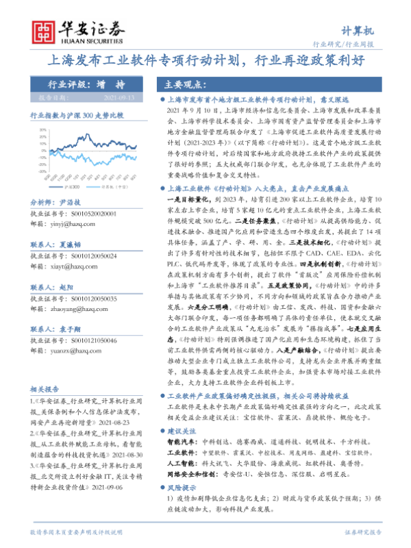 【华安证券】【20210913】20210913-华安证券-计算机行业周报:上海发布工业软件专项行动计划,行业再迎政策利好-14页 行业研究