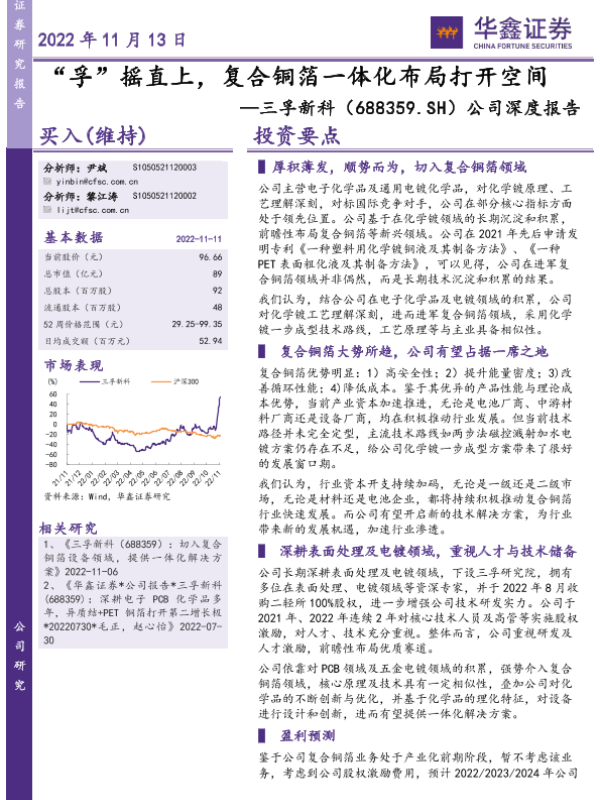 【华鑫证券】【20221113】公司深度报告:“孚”摇直上,复合铜箔一体化布局打开空间-26页 行业研究