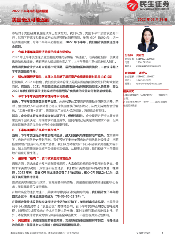 【民生证券】【20220628】2022下半年海外经济展望:美国衰退可能迟到-22页 行业研究