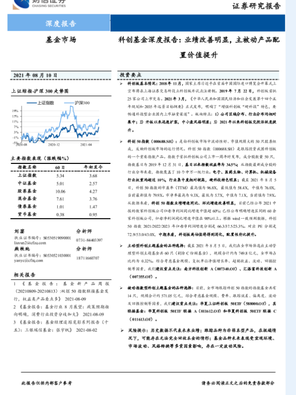 【财信证券】【20210810】科创基金深度报告:业绩改善明显,主被动产品配置价值提升-20页 行业研究