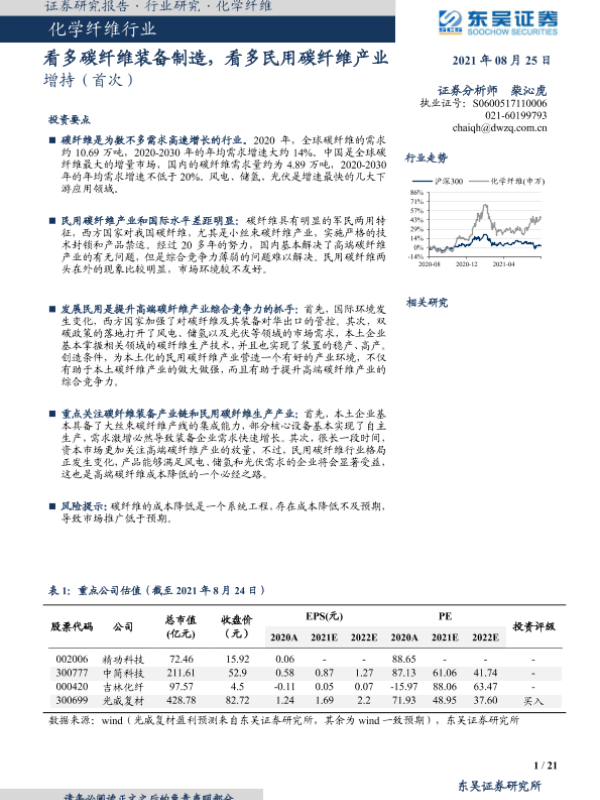 【东吴证券】【20210825】化学纤维行业:看多碳纤维装备制造,看多民用碳纤维产业-21页 行业研究