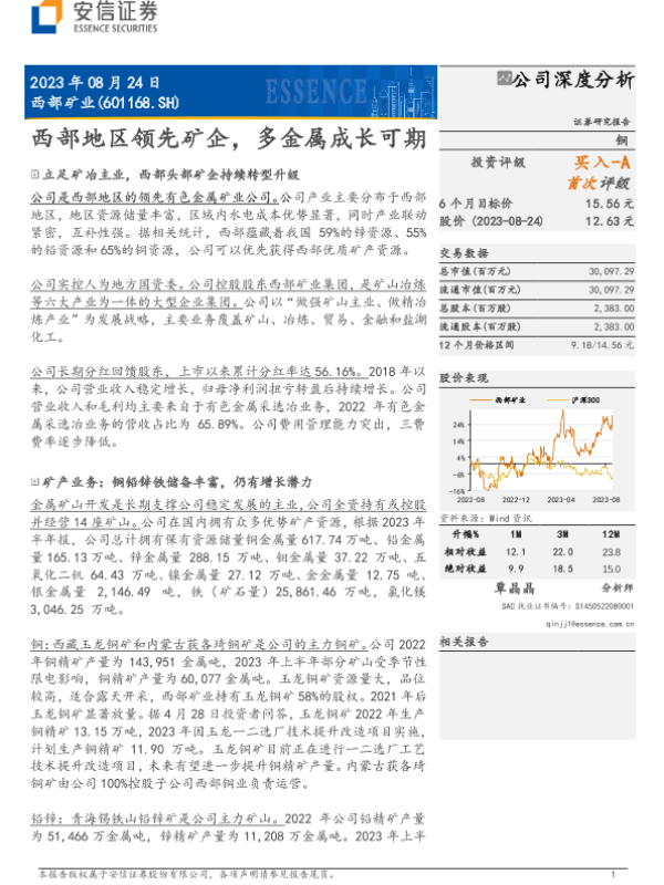 【安信证券】【20230824】西部地区领先矿企,多金属成长可期-28页 行业研究