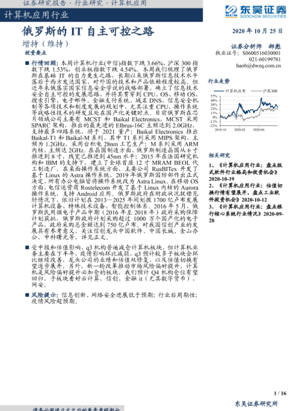 【东吴证券】【20201025】计算机应用行业:俄罗斯的IT自主可控之路-16页 行业研究