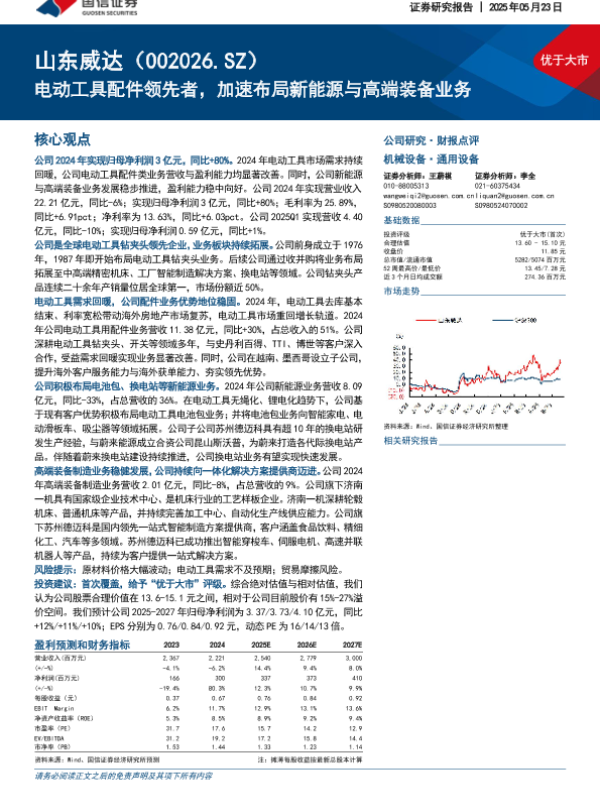 【国信证券】【20250523】电动工具配件领先者,加速布局新能源与高端装备业务-23页 证券期货研究报告