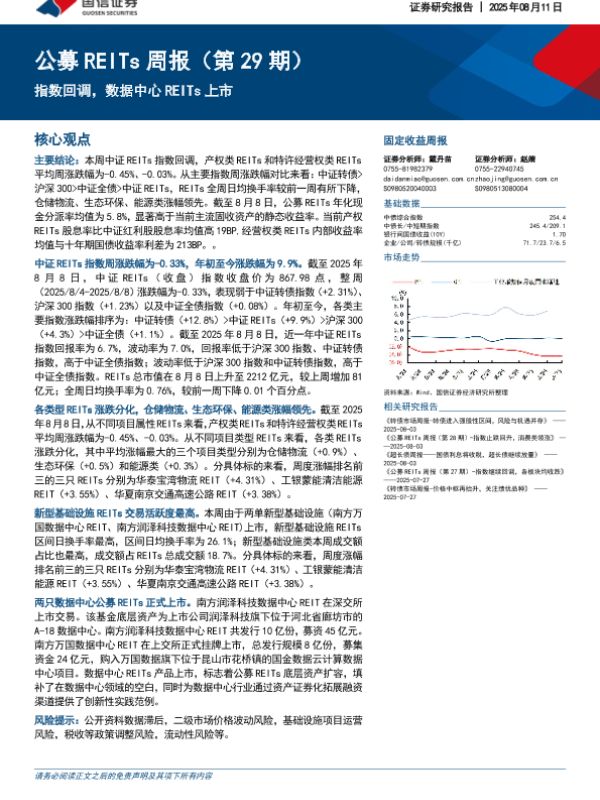 【国信证券】【20250811】公募REITs周报(第29期):指数回调,数据中心REITs上市-12页 证券期货研究报告
