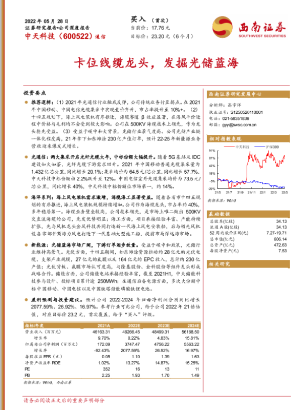 【西南证券】【20220528】20220528-西南证券-中天科技-600522.SH-卡位线缆龙头,发掘光储蓝海-47页 行业研究