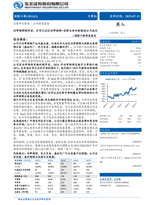 【东北证券】【20250715】功率预测领军者,分布式光伏功率预测+创新业务双轮驱动公司成长---国能日新深度报告-39页 证券期货研究报告