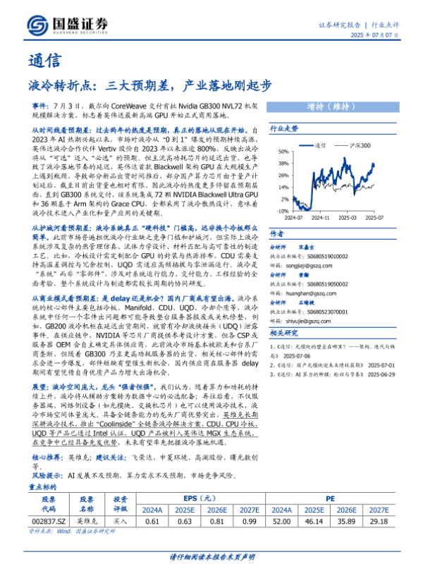 【国盛证券】【20250707】通信:液冷转折点:三大预期差,产业落地刚起步-2页 证券期货研究报告