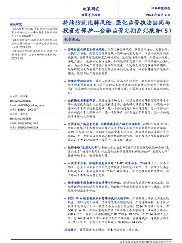 【海通证券】【20240604】持续防范化解风险,强化监管执法协同与投资者保护---金融监管定期系列报告(5)-19页 行业研究