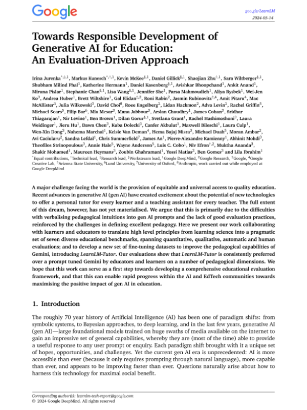 【Google DeepMind】【20240514】Towards Responsible Development of Generative AI for Education An Evaluation-Driven Approach-86页 行业研究