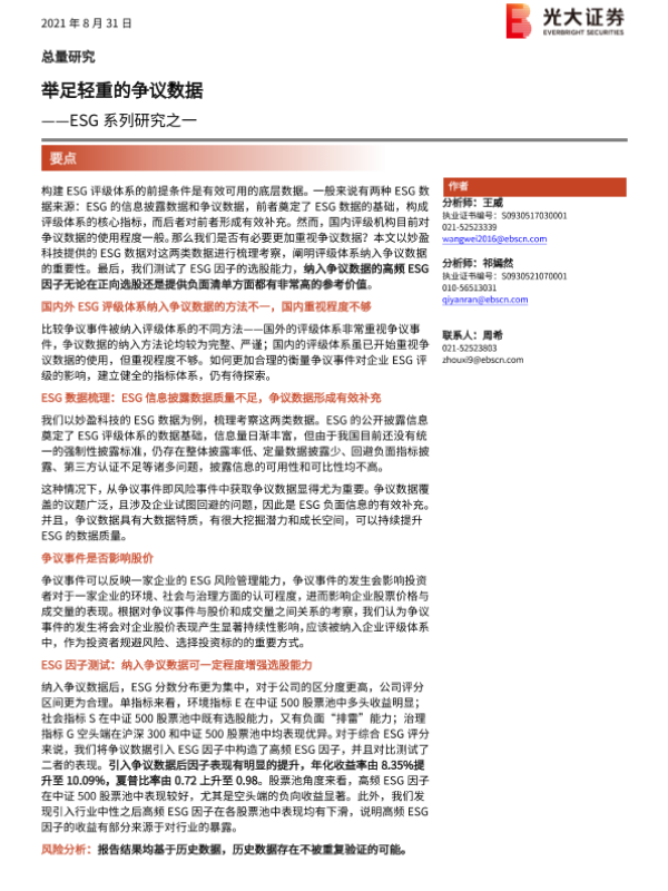 【光大证券】【20210831】ESG系列研究之一:举足轻重的争议数据-30页 行业研究