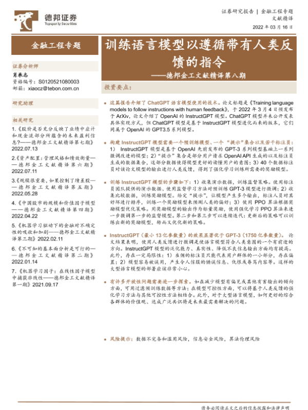 【德邦证券】【20230316】训练语言模型以遵循带有人类反馈的指令-30页 行业研究