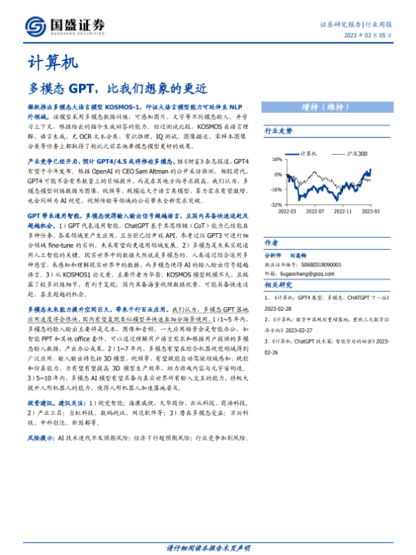 【国盛证券】【20230305】计算机行业周报:多模态GPT,比我们想象的更近-13页 行业研究