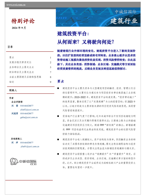 【中诚信国际】【202409】建筑行业投资平台:从何而来?又将驶向何处?-11页 行业研究