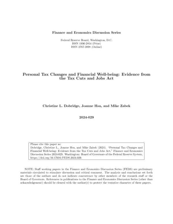 【Board of Governors of the Federal Reserve System】【20240514】Personal Tax Changes and Financial Well-being Evidence from the Tax Cuts and Jobs Act-50页 行业研究
