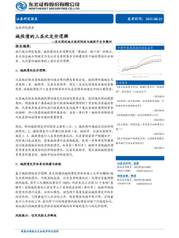 【东北证券】【20210823】东北固收地方政府财政与城投平台专题四:城投债的三层次定价逻辑-31页 行业研究