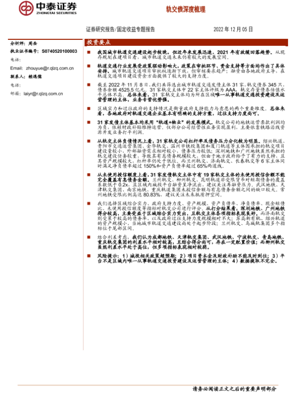 【中泰证券】【20221205】固定收益专题报告:轨交债深度梳理-29页 行业研究