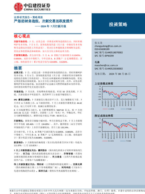 【中信建投证券】【20240805】2024年7月打新月报:严惩防财务造假,次新交易活跃度提升-24页 行业研究