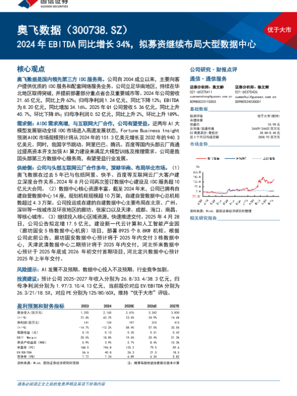 【国信证券】【20240507】奥飞数据2024年EBITDA同比增长34%,拟募资继续布局大型数据中心-18页 公司研究