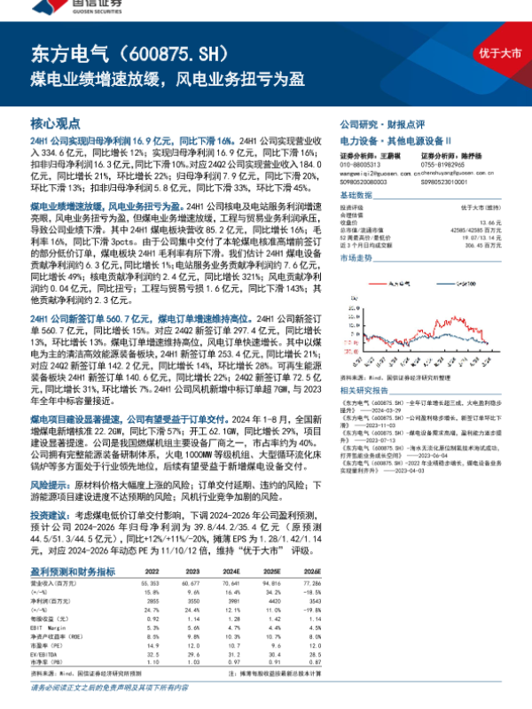 【国信证券】【20240903】东方电气(600875)煤电业绩增速放缓,风电业务扭亏为盈-10页 行业研究