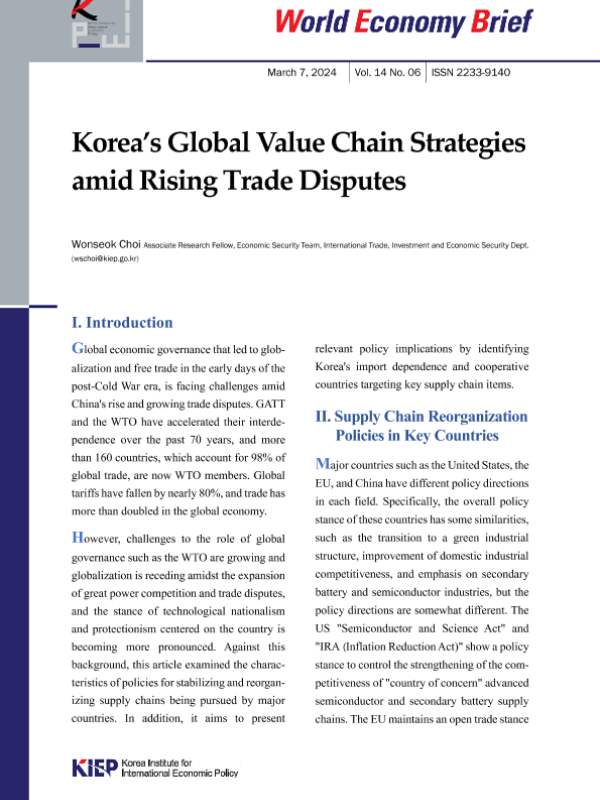 【韩国国际经济政策研究所】【20240307】韩国的全球价值链战略-6页 行业研究