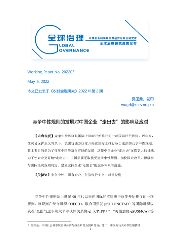 【中国社会科学院】【20220505】竞争中性规则的发展对中国企业“走出去”的影响及应对-14页 行业研究