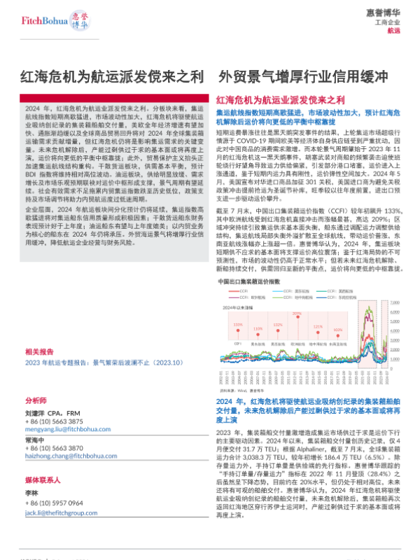 【惠誉博华】【20240809】红海危机为航运派发傥来之利 外贸景气增厚行业信用缓冲-9页 行业研究