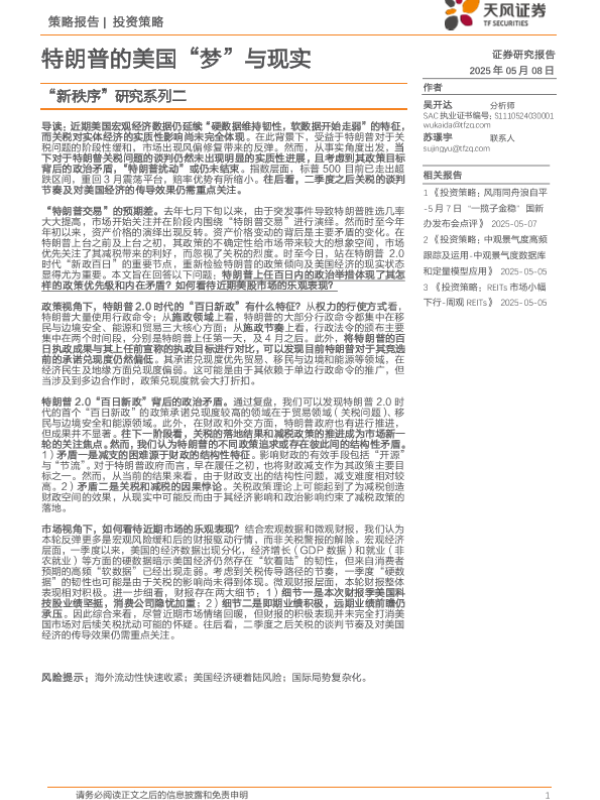 【天风证券】【20250508】“新秩序”研究系列二:特朗普的美国“梦”与现实-11页 证券期货研究报告