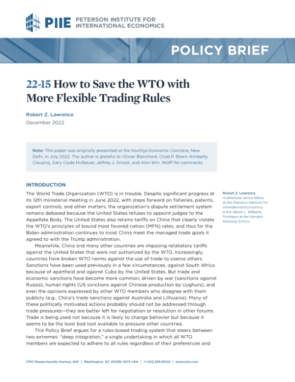 【彼得森经济研究所】【202212】如何用更灵活的贸易规则拯救世贸组织-11页 行业研究