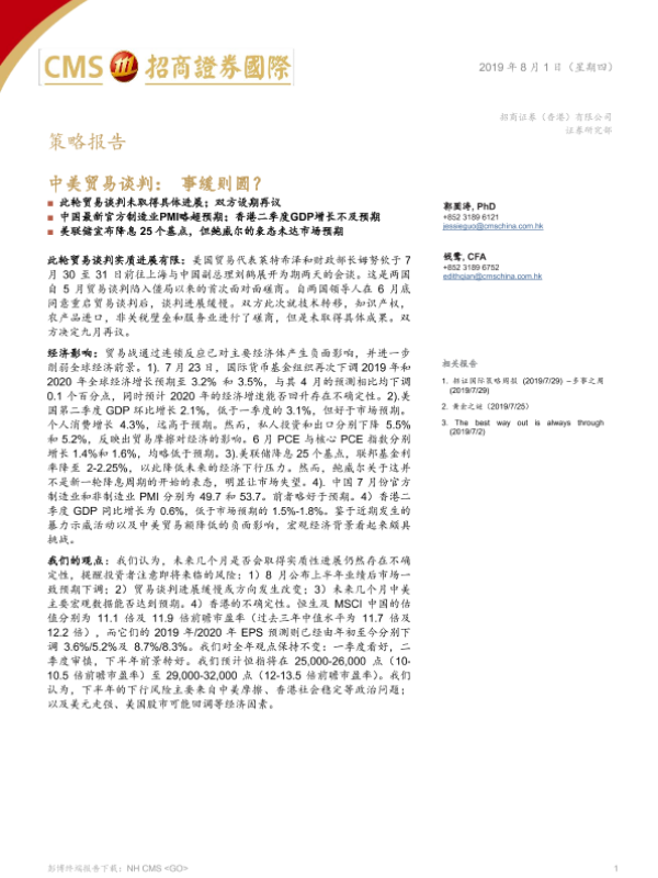 【招商证券国际】【20190801】策略报告:中美贸易谈判,事缓则圆?-12页 宏观策略