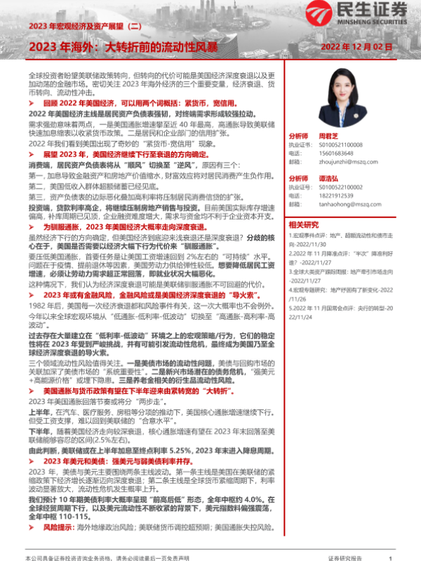 【民生证券】【20221202】2023年宏观经济及资产展望(二):2023年海外,大转折前的流动性风暴-21页 行业研究