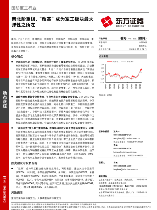 【东方证券】【20190702】国防军工行业:南北船重组,“改革”成为军工板块最大弹性之所在-3页 证券期货研究报告