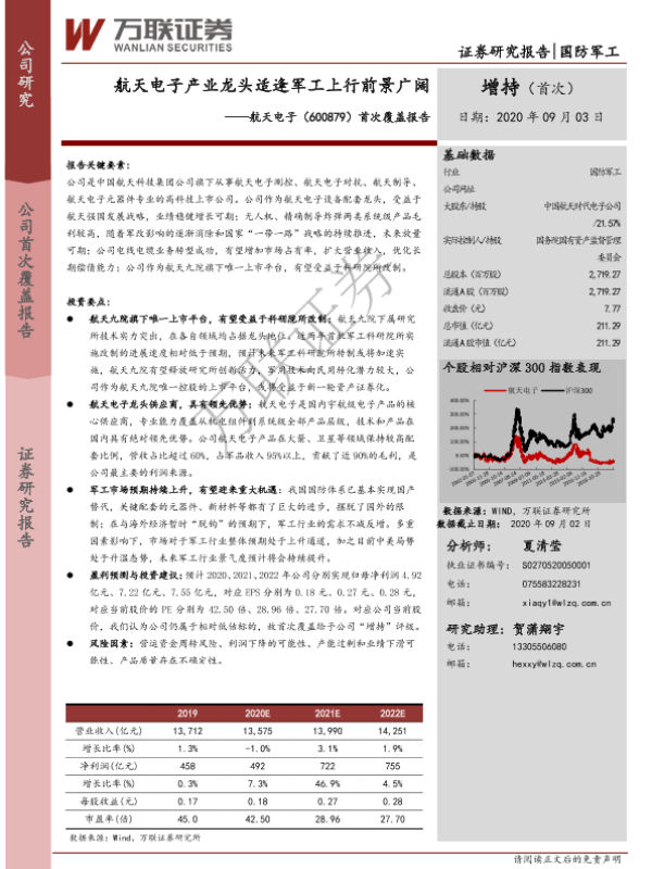 【万联证券】【20200903】20200903-万联证券-航天电子-600879.SH-首次覆盖报告:航天电子产业龙头适逢军工上行前景广阔-32页 行业研究