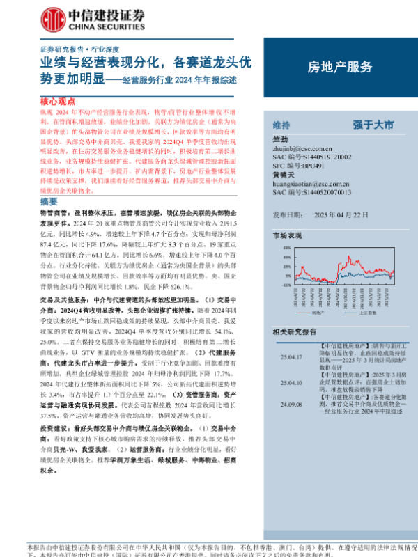 【中信建投证券】【20250422】经营服务行业2024年年报综述:业绩与经营表现分化,各赛道龙头优势更加明显-21页 行业研究