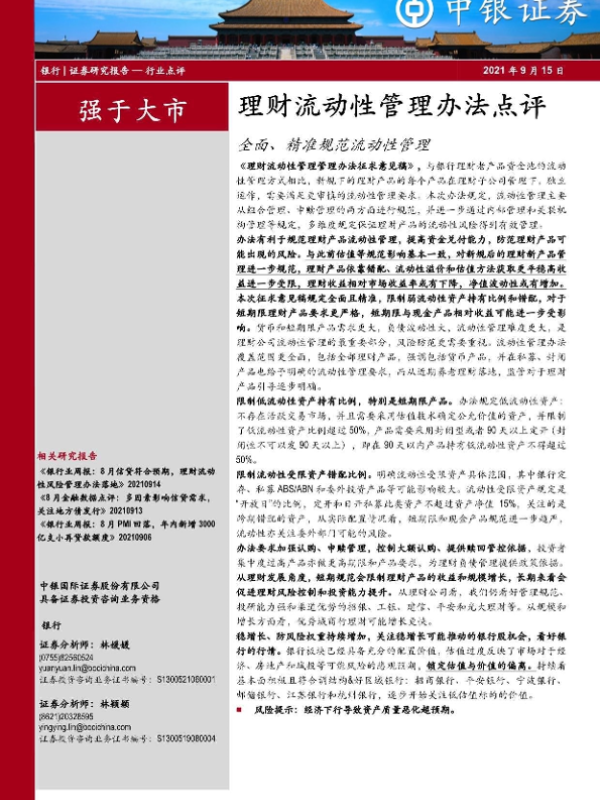 【中银证券】【20210915】银行理财流动性管理办法点评:全面、精准规范流动性管理-11页 行业研究