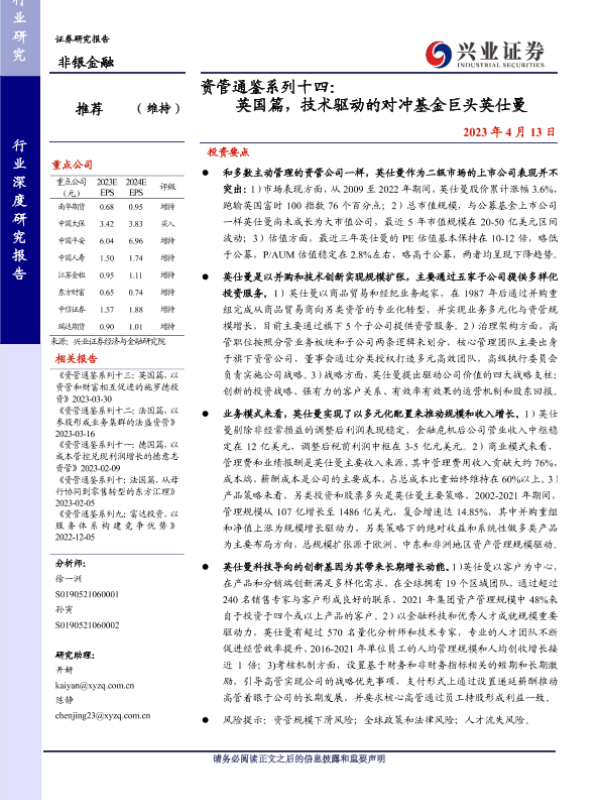 【兴业证券】【20230413】非银金融行业资管通鉴系列十四:英国篇,技术驱动的对冲基金巨头英仕曼-30页 行业研究