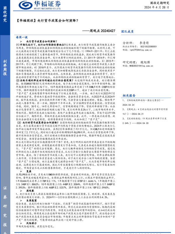 【华福证券】【20240428】央行货币政策会如何演绎?-18页 行业研究