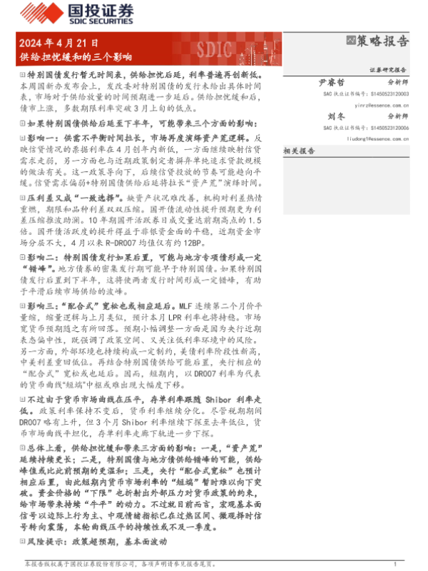 【国投证券】【20240421】固定收益定期报告:供给担忧缓和的三个影响-10页 行业研究