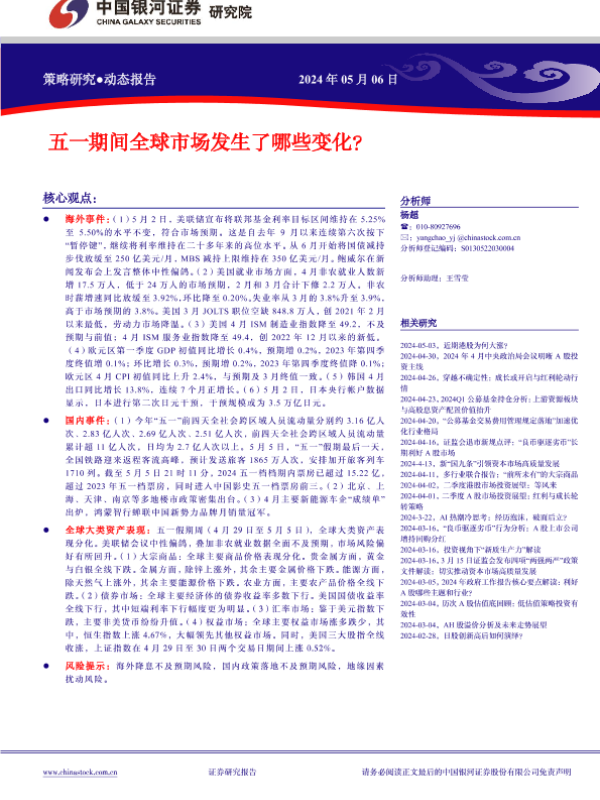 【银河证券】【20240506】策略研究:五一期间全球市场发生了哪些变化?-13页 行业研究